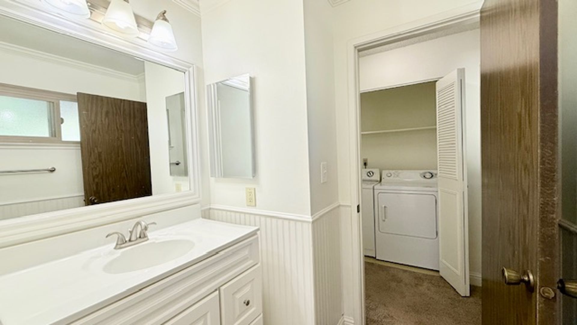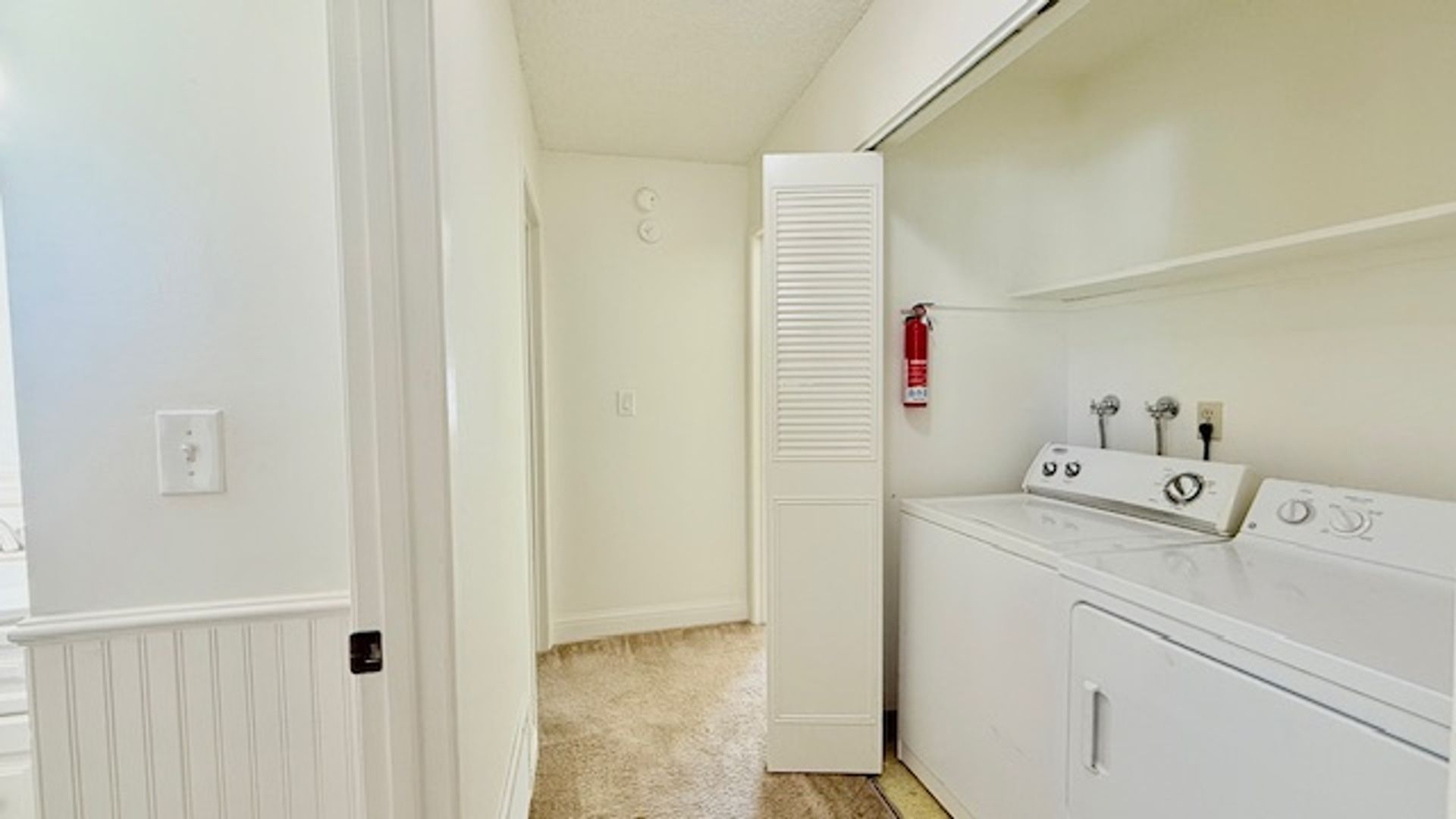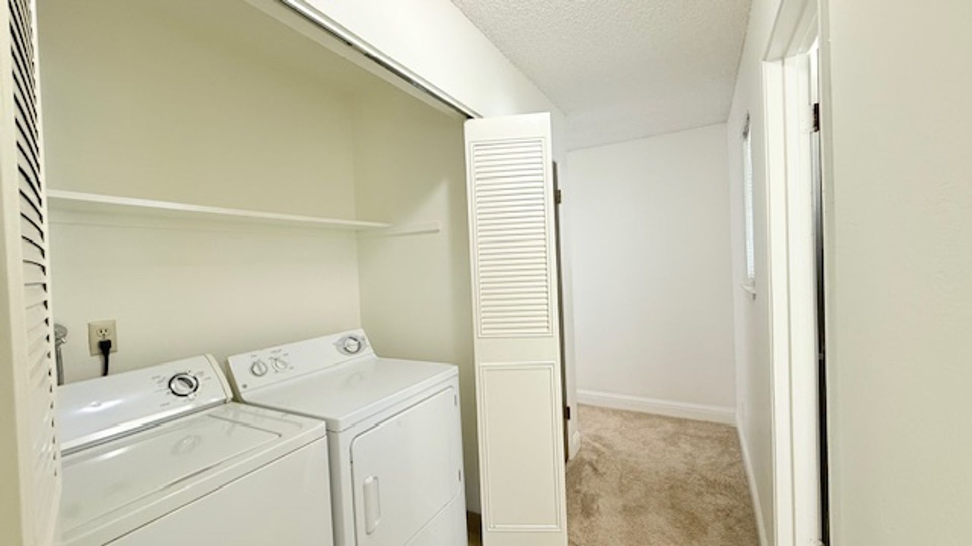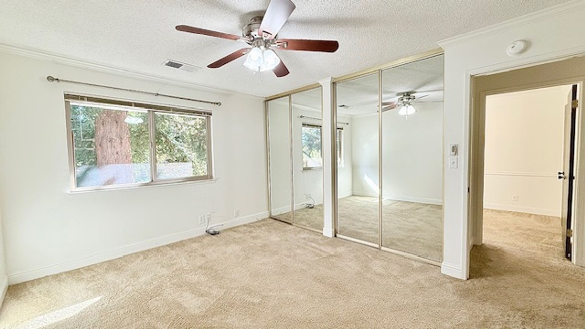 The laundry closet sits atop the upstairs hallway with bi-fold closet doors and shelf. The hall bath features single sink vanity with solid stone countertops and cabinets, a separate water closet and shower-over-tub with tub enclosure. Bedroom #1 features large window overlooking the backyard with view of picturesque Redwood trees, large mirror wardrobe closet, and lighted ceiling fan. Bedroom #2 features a walk-in closet, lighted ceiling fan and window overlooking the back patio.